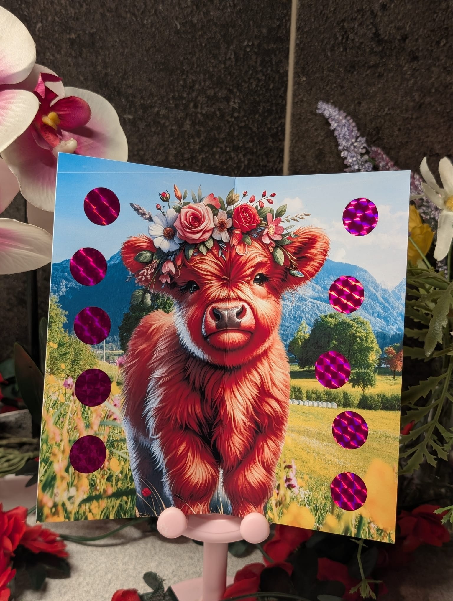 Die süße braune Kuh auf ihrer Sommerwiese. 🌸